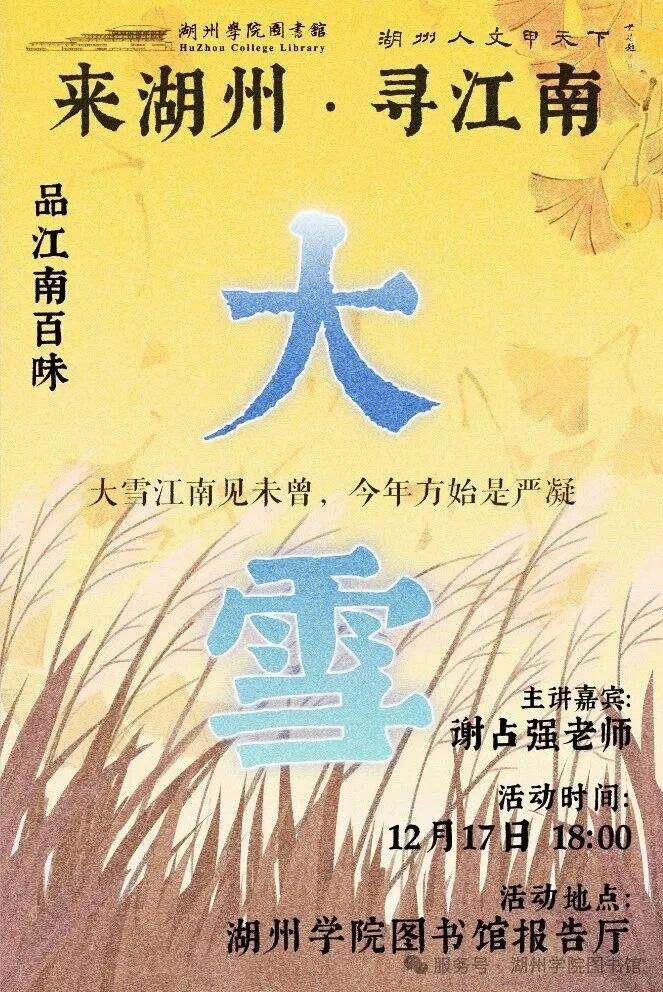 请关注公众号“湖州学院图书馆”,发送关键词“江南”即可完成报名。